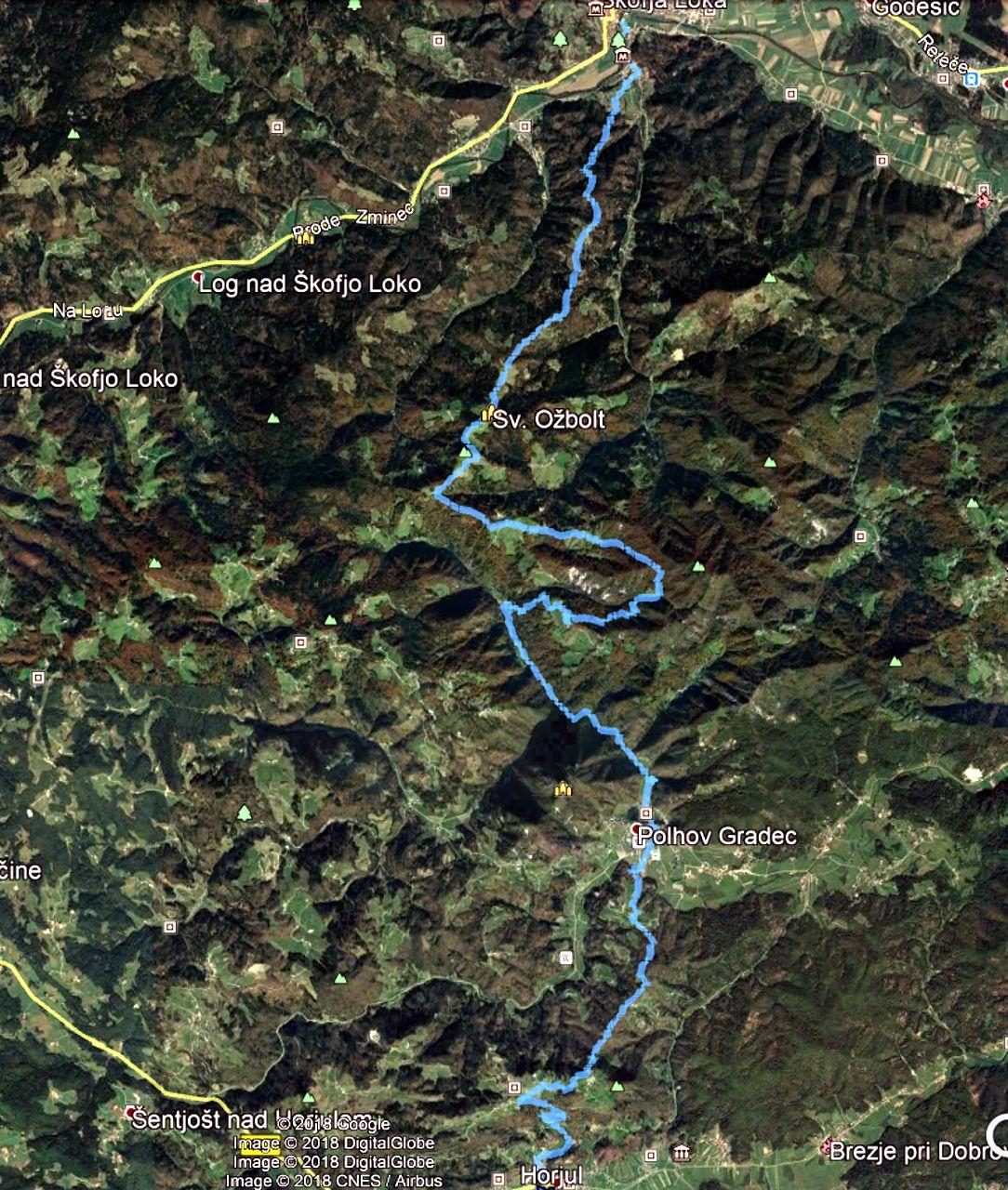 Planirano pot smo začeli v Puštalu, se vzpeli mimo sv. Andreja na sv. Ožbolt, nadaljevali pot skozi Bezje in Gabrše v Polhov Gradec ter čez Koreno domov.