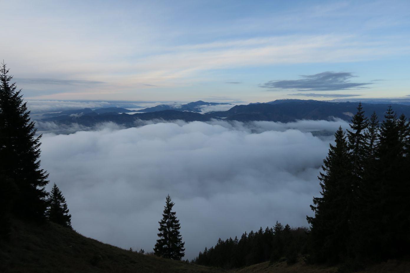 Ob malo meglenem vemenu nas je 8 pohodnikov osvojilo Tolsti vrh in Kriško goro. Zjutraj je bilo v dolini megleno, zgoraj pa še sončno.