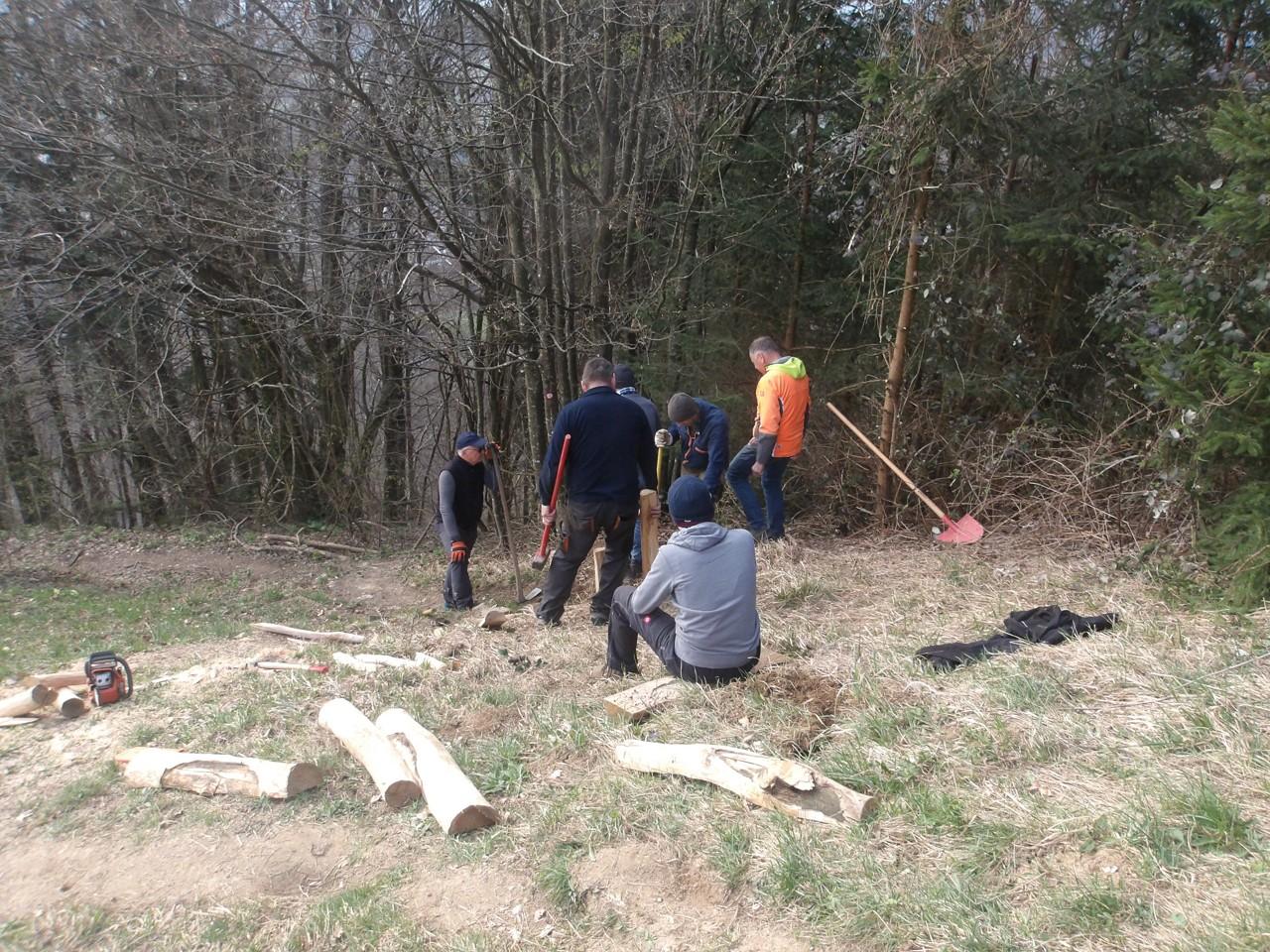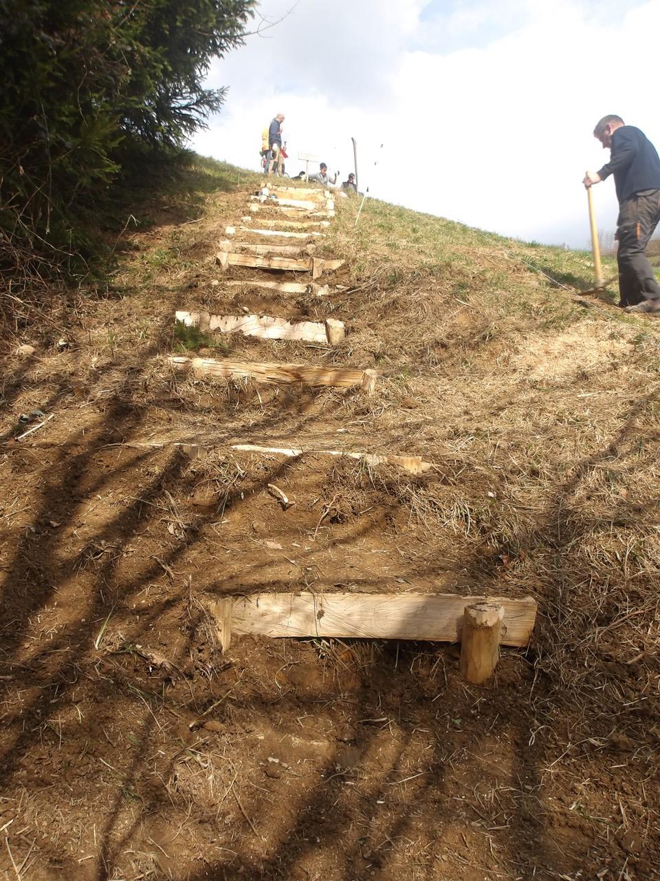 Kot je bilo planirano, smo urejali najbolj obremenjeno pot čez Kanglco (Stara strma pot), dodali smo še stopnice, nekatere obnovili, dodali en drog za smerni tabli na križišču z dovozno cesto za Skrniše, uredili bankino in delali odvodnjavanja in čiščenje.